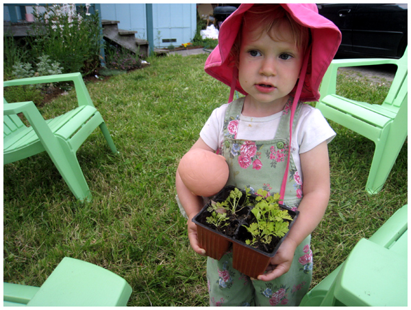 And here’s a photo of our little girl and AVID gardener! Trust me, I couldn’t be more pleased. We love working out in the yard together and I’m loving it!