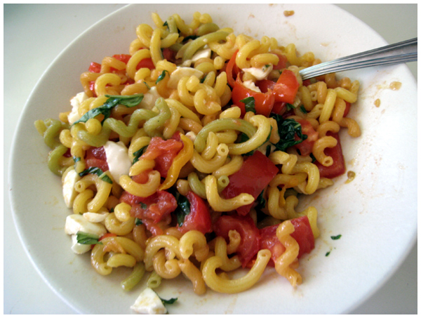 Cook pasta according to manufacturers directions. Toss with a light coating of olive oil and set aside.