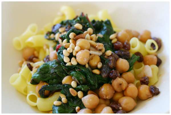 Swiss Chard With Chickpeas, Pine Nuts, and Quinoa Pasta