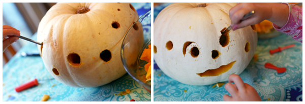 David and I both have had chickenpox twice (talk about crazy statistics!) so we’re able to provide her with the care she needs right now and not worry about ourselves: nearly constant contact and attention, lots of hugs, many books read and projects done… we’re been busy carving pumpkins, cutting paper dolls, baking, cooking and various household chores. (I’m trying to catch up around the house. HA!)