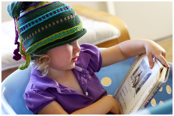 I love this shot of her, taken at my parents house last week, asleep amongst the comfy pillows next to a stack of books.